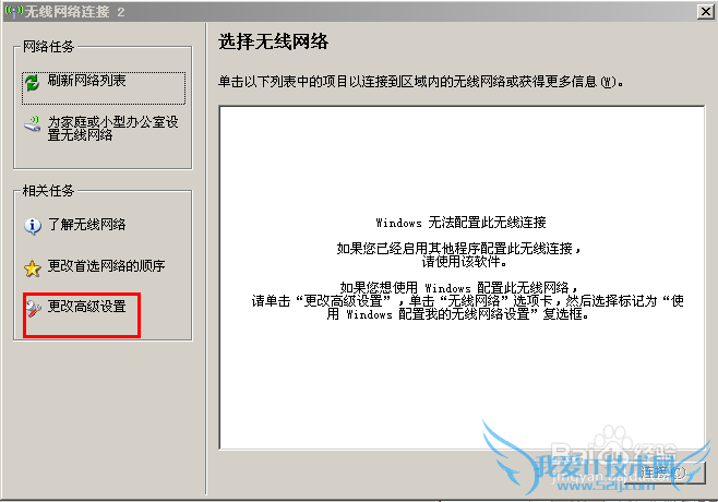 2.一定要用windows配置我的无线网络设置,不然手机就会搜不到热点,更改高级设置,勾选上配置我的无线网络配置: