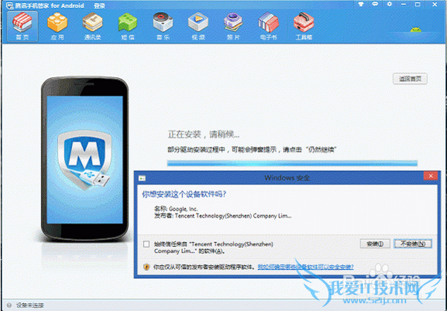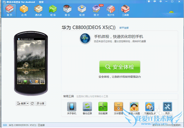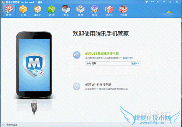 1.想用USB数据线将手机连接到电脑,启动“腾讯手机管家 for Android”,如图点“连接”;
