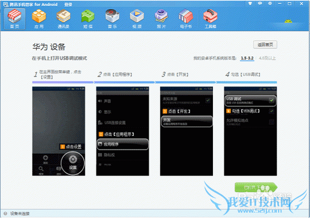 2.根据提示,在手机上开启USB调试模式;