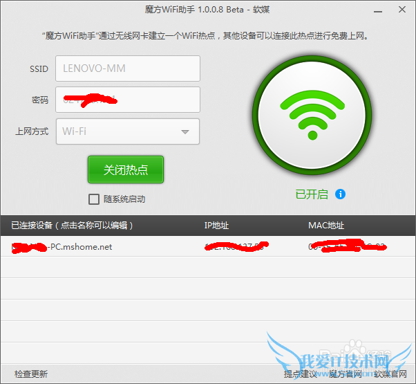 在魔方WiFi助手端可以看到连接到的电脑或移动设备的连接信息