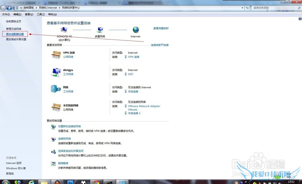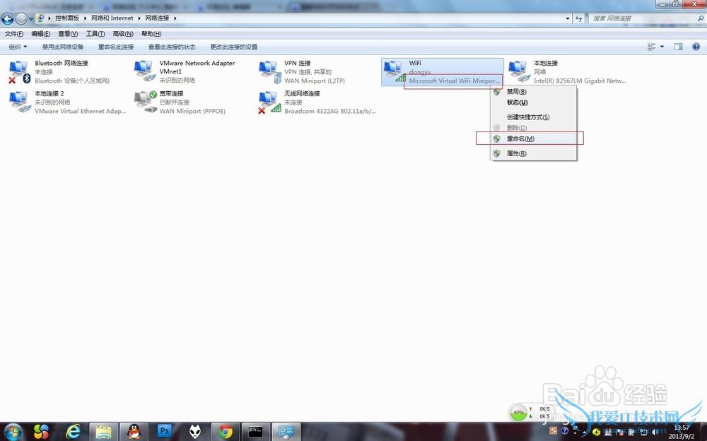 进去后,里面出现了一个Microsoft Virtual WiFi Miniport Adapter的新网络图标,把名字改成WIFI(也可以随便改名)
