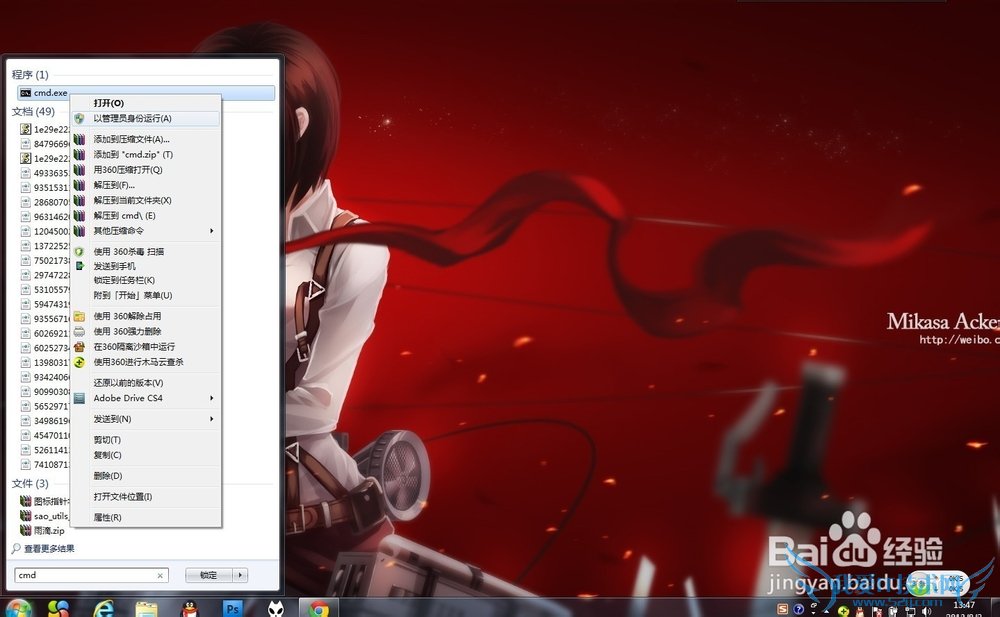 第一步打开开始菜单,运行里输入cmd,右键以管理员身份运行。