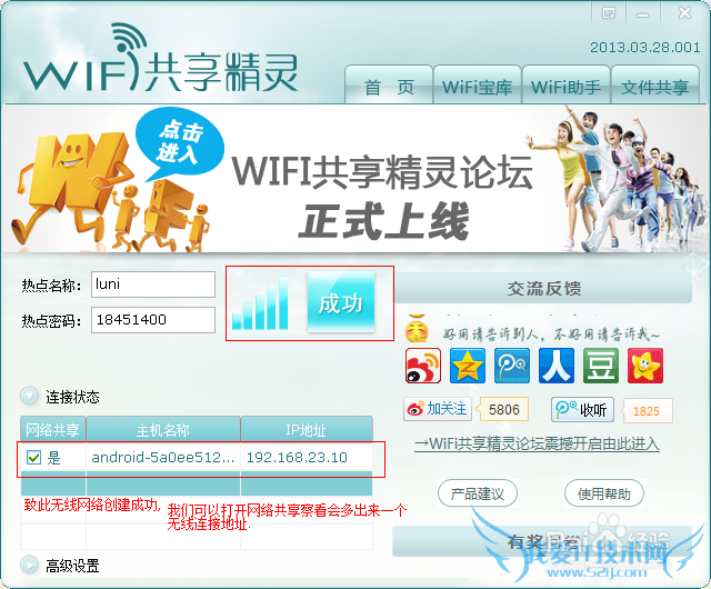 然后我们做的没有别的就是赶紧拿出来你的手机查找无线网,然后连接测试。是不是小激动了一下,无线网络畅想起程………………………………………………………………BUG…………………………………………………………………………《--刚在说到在启动的时候有时可能连接不成功,接下来我们就为大家解决以下此类问题。--》很