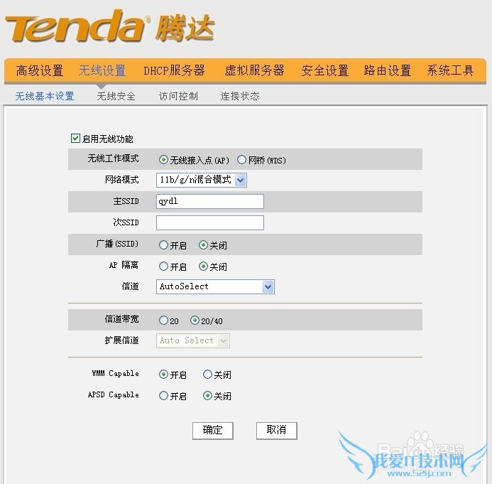 2,输入密码进去后找到无线设置,把广播(SSID)关闭,点一下确定即可。在这里大家先把自己的SSID名称和WIFI密码记起来,以便使用手机连接WIFI。(注意:开启SSID广播的意思就是开启别人可以搜索到你的WIFI功能,关闭就是不能搜索到你的WIFI),见图