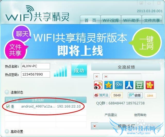 现在手机流量资费伤不起,特别是一些浏览量较大的手机用户,但是很多网友可能身边本来有一台笔记本电脑,其实完全可以利用软件来设置成为一个wifi热点,这样我们尽情的在手机上使用流量,也不会花一分钱的,简单的说,就是用电脑的流量来手机上网。