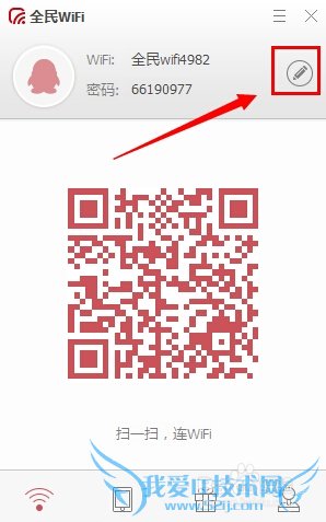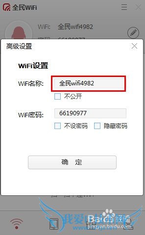 1.在全民wifi的主界面最上方,是直接显示着我们的wifi名称以及密码的,大家可以双击名称和密码,直接进行修改。