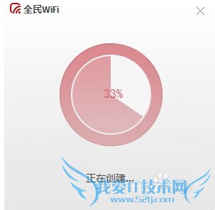 3.等到下方安装的进度条走满之后呢,全民WiFi就开始自动为我们创建WiFi环境啦,有了它我们以后就可以让自己的宿舍、家里、单位等等的地方都能看到满格的无线信号啦!现在耐心等待着创建WiFi环境即可。