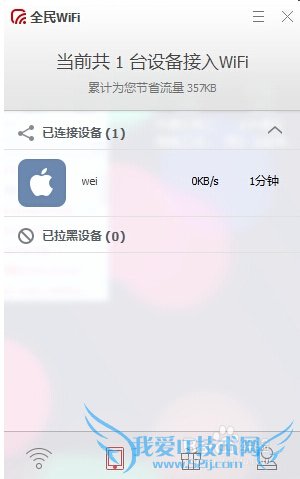 5.下方第二个界面,是防止蹭网的。这里会显示我们这个全民WiFi所连接到的设备,不管是手机、平板还是电脑都会有所显示,下面还有拉黑的功能,不过小编我还没有试过呢。改天一定要试一下过把瘾!