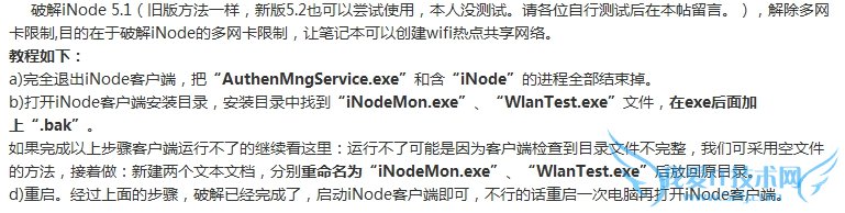 欢迎您访问我爱IT技术网,今天小编为你分享的电脑教程是通过网络精心收集筛选的最优节选:“inode客户端破解实现wifi 最新方法!!-wifi”,请注意:文中所谈及的内容不代表本站的真正观点,也请不要相信各种联系方式。下面是关于网络上inode客户端破解实现wifi 最新方法!!-wifi的整理详细信息