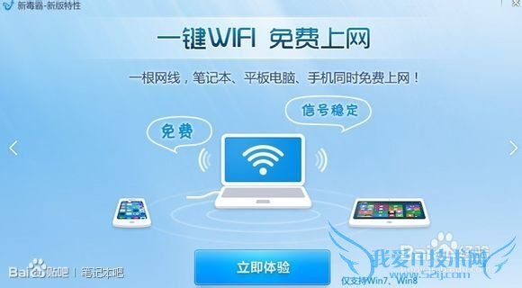 欢迎您访问我爱IT技术网,今天小编为你分享的电脑教程是通过网络精心收集筛选的最优节选:“教你怎样用毒霸把笔记本变成WiFi热点-wifi”,请注意:文中所谈及的内容不代表本站的真正观点,也请不要相信各种联系方式。下面是关于网络上教你怎样用毒霸把笔记本变成WiFi热点-wifi的整理详细信息
