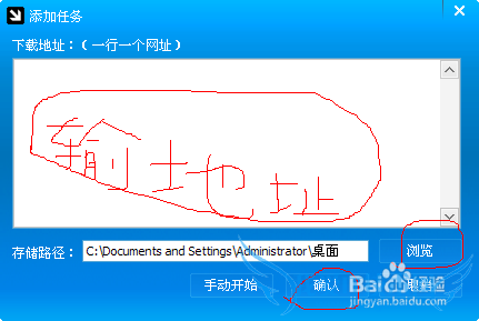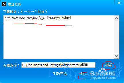 点击新建打开添加任务窗口,在下载地址下面框内输入网页视频网址,在存储路径后面点击浏览选择视频保存位置,然后点击确定开始下载视频,如下图所示: