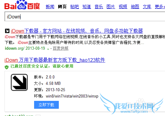 首先我们在百度下载 iDown下载器绿色版(直接百度输入iDown就可以找到了)