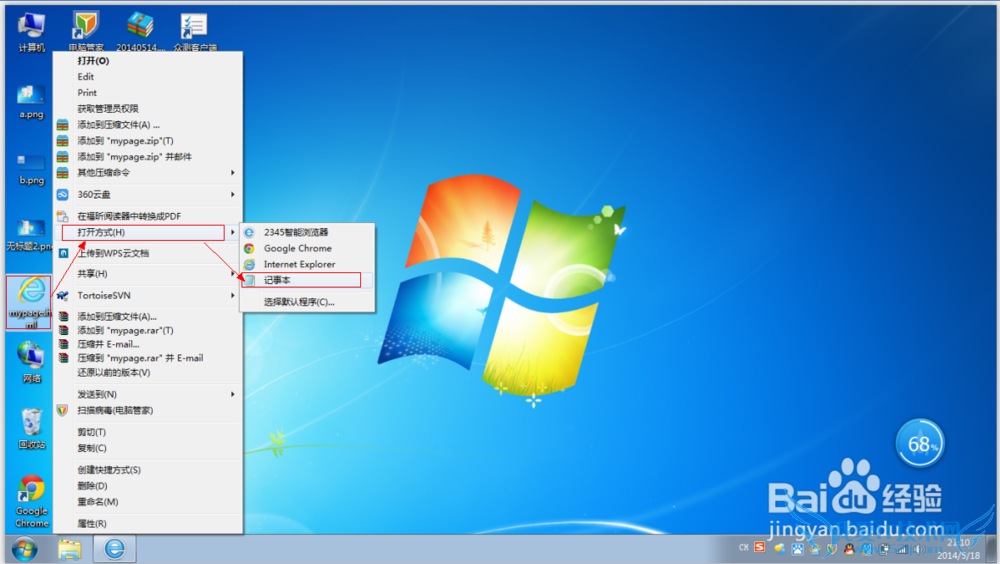 改完名称并保存后原来的文本文件就会变成一个网页文件,此时鼠标放在mypage.html文件之上,鼠标右键选择打开方式,在打开方式中选择“文本文件”,来打开这个文件,如下图: