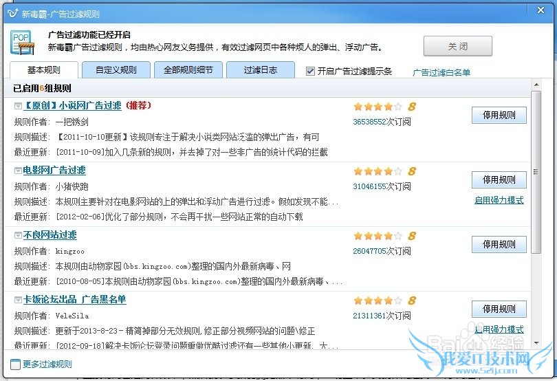 把这次处理过程记录下来,希望以后再遇到此问题不用再整么久,也希望能帮到其它的朋友。另外,提醒一下朋友们,由于广告过滤规则是网友所制作的,非金山官方,而且经常会有变动和更新,所以我这次是因" 卡饭论坛出品 广告黑名单"规则引起的,但不等于这个规则产生的问题不会被修复的可能,也不等于其它目前正常的规则以后就一点没问题,所以在您碰到类似的情况时,可以逐一停用这些规则来判断是由那些规则导致的。