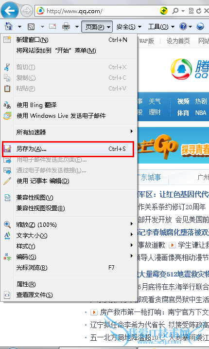 在浏览器总打开你想要下载的网页,在浏览器的左上方找到“页面”选择另存为。