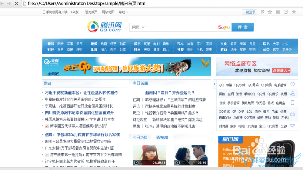 查看打开效果,咋一看这效果跟联网的效果一样的呀!但是仔细看地址栏,是本地文件来的!