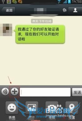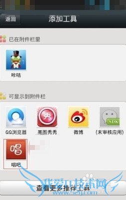 1.分享歌曲给好友,在微信里的对话聊天界面里,点击“+”号,然后再点击附件栏里的加号,把已经安装在手机里的播放软件如“酷狗”、“唱吧”等添加到附件栏里。