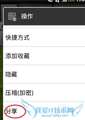 3.在弹出的菜单中选择分享选项。