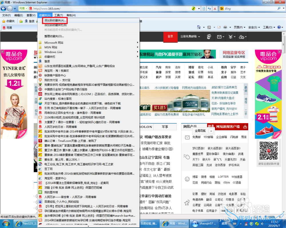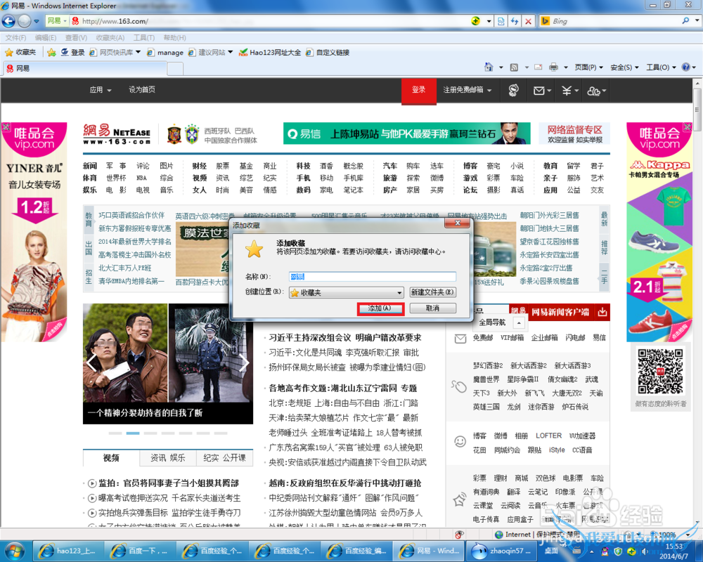 问题4:怎么在收藏夹中预定一个自己喜欢的网页?