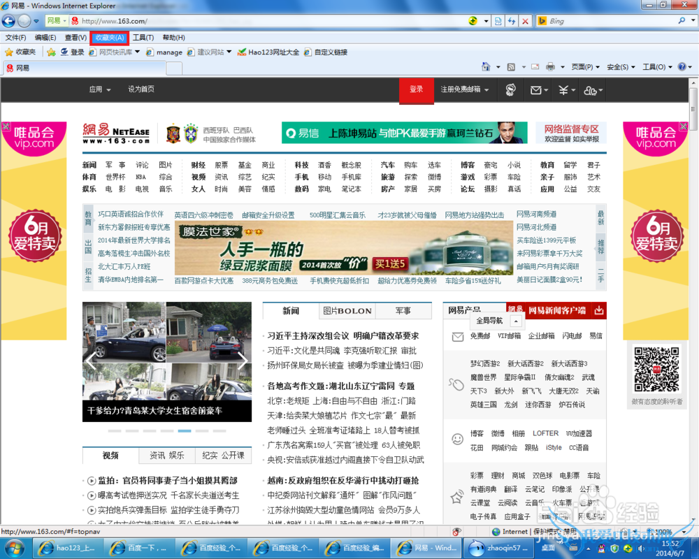 收藏夹是在上网的时候方便记录自己喜欢、常用的网站,把它放到一个文件夹里,想用的时候可以打开找到。 添加方法: 1)在地址栏中输入网址,回车进入主页; 2)用鼠标点击IE浏览器中的“收藏夹”菜单,选择“添加到收藏夹”命令; 3)弹出收藏设置提... >>详细
