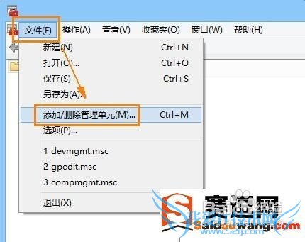 2、点击“文件=》添加/删除管理单元”;