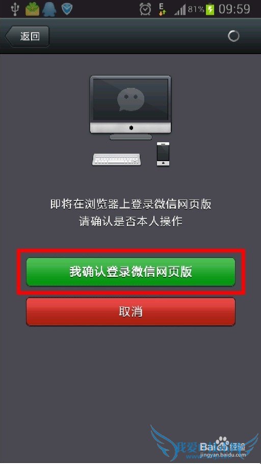 1、首先,在电脑端通过游览器进入微信页面版。 2、通过手机登陆微信,按照下图步骤进行操作。 3、对IE页面的二维码进行扫描 4、确认登陆微信网页版 5、要退出微信网页版,官方给出的方法有三种: 1、直接关闭浏览器; 2、长时间没操作时,网页版... >>详细