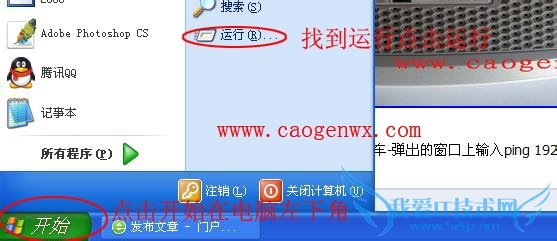 3、ping一下这些打不开的网站,打开电脑左下角开始。点击运行。(WIN7和XP都是这样的)