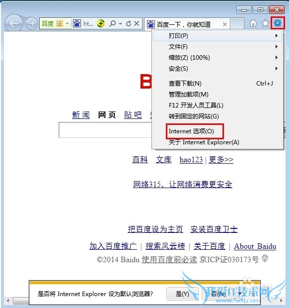 这里以W7系统里的IE浏览器为例给大家说下解决方法的步骤: