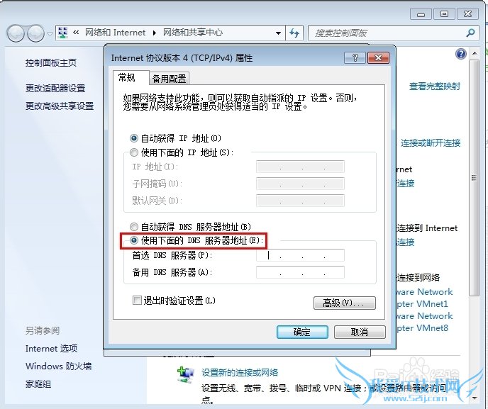 7.打钩“使用下面的DNS服务器地址(E)” 如图