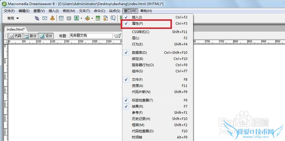 注意!如果你没有显示【属性】请到DW的标题那一栏中找到---【窗口】--------查看是否勾选【属性】