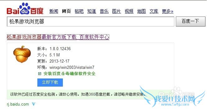 第一步,百度搜索“松果游戏浏览器”,点击下载