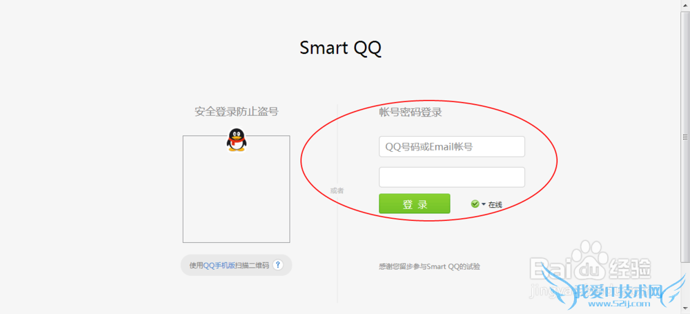 选择smartQQ 则自动直接跳转到账号密码输入窗口,输入密码账号即可登入网页版QQ。