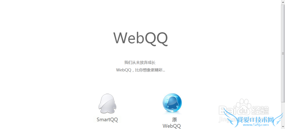 第三步、出现页面共两种新旧网页QQ 登入入口,随便选择一个就可。点击选择原webQQ,出现下面页面,点击QQ图标进入账号密码输入框