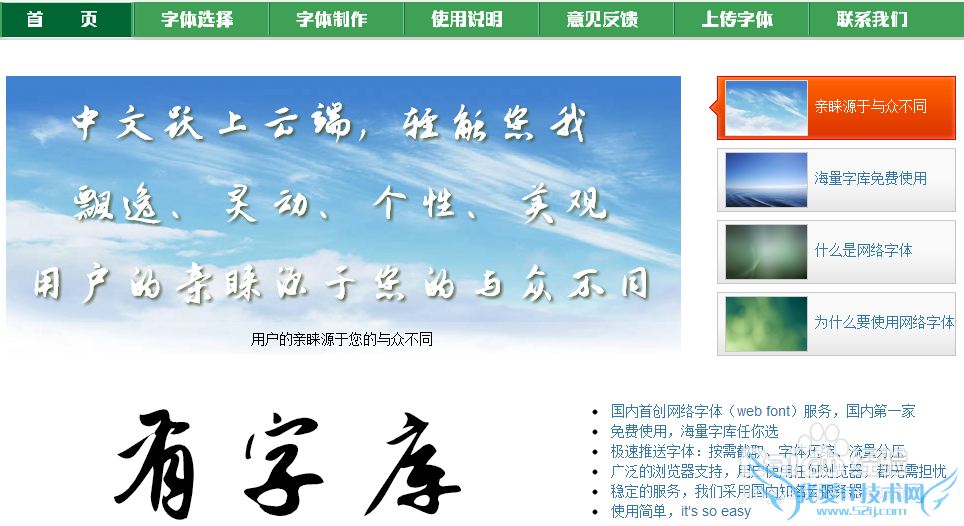 因为是截取成小字库,所以字体文件很小(比图片还小),页面打开速度非常快。