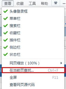 一、打开浏览器,几乎所有的浏览器【查找快捷键都是Ctrl+F】或者,点击浏览器右上方的【查看】-【当前网页查找】