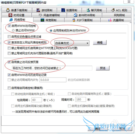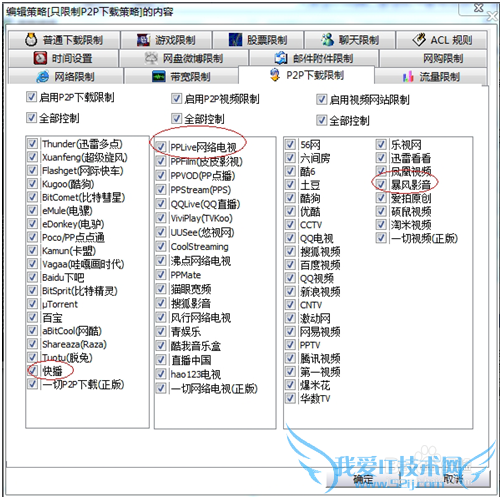 图:禁止P2P软件下载、屏蔽网络电视
