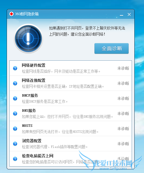 双击打开打开360断网急救箱,全面诊断。