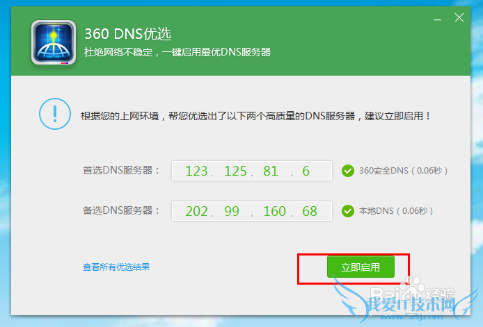 立即启用最优DNS服务器。