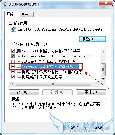 第三步:在属性窗口找到Internet协议版本4,并对着它双击鼠标,或者鼠标选中它再点击下面的“属性”,进入TCP/IPV4属性界面