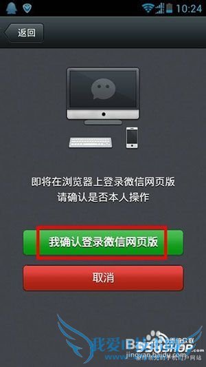 5.这时手机上提示我们确认,点击我确认登录微信网页版。