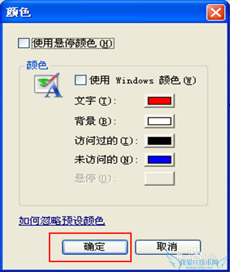 取消windows颜色,自己设定颜色,设定好后,点击“确定”返回,查看效果。