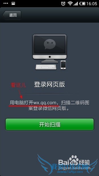 网页中会出现需要扫描的二维码,在手机上点击“开始扫描”,扫描网页中的二维码登录;