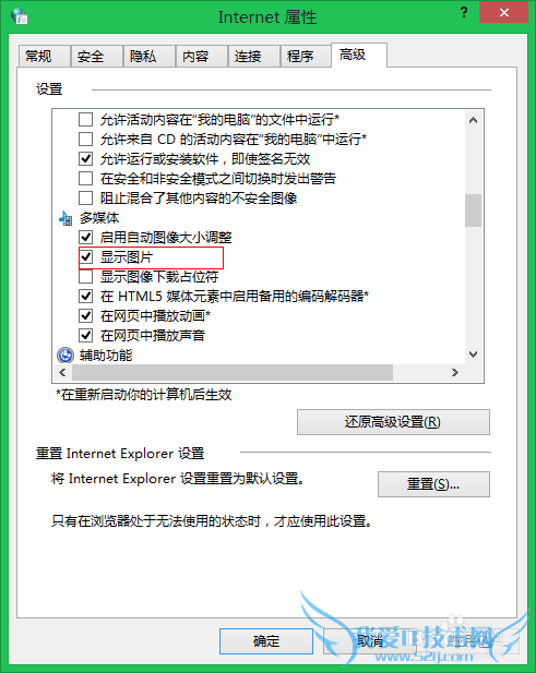 4.选择多媒体,去除勾选显示图片