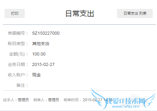 点击支出单上的【日常支出】按钮,返回至日常支出列表界面。
