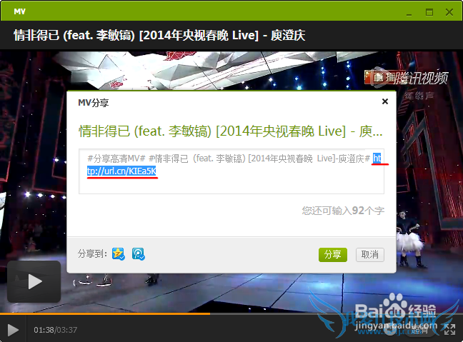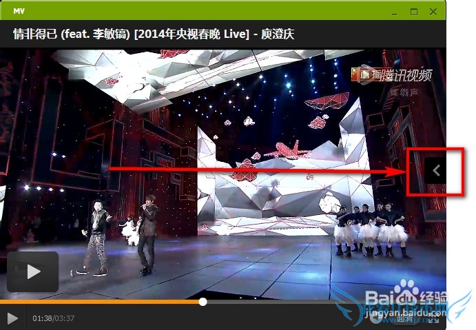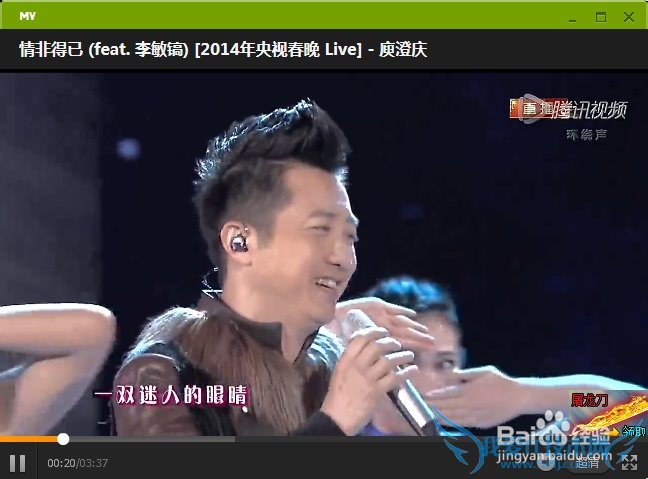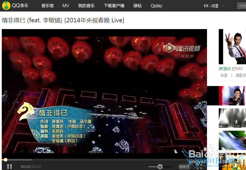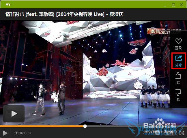 1、首先看看MV界面,我们会发现他是腾讯视频的视频资源,所以我们不难发现,他就是引用腾讯视频的视频播放的,那么肯定会有一个网页的,接下来就来教大家如何获得这个网页地址吧。