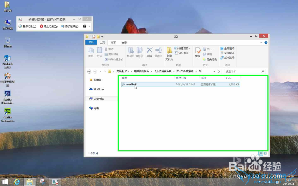 可以到网上下载安装包,然后看看你的电脑是多少位的,把里面的补丁文件amtlib.dll,覆盖到Adobo Photoshop CS6文件夹里(就是覆盖这里的一个同名文件)。 >>详细