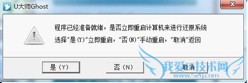 3、弹出程序已经准备就绪的提示框,此时选择重启即可进入还原阶段。“立即重启”、“手动重启”都可以,若暂时不需要还原则选择“取消”。