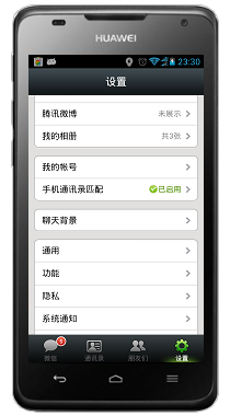 进入设置功能:打开“微信”,点击“设置”按钮。如下图所示: