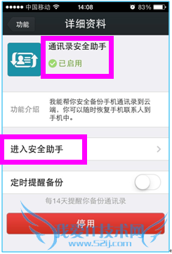 4、将“通讯录安全助手”设置成已启用的功能,并点击进入“通讯录安全助手”。如图: