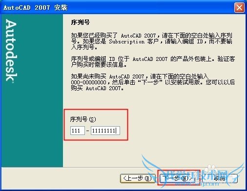 1. 启动安装 Autodesk AutoCAD 2007 2. 输入安装序列号: 111-111111111, 3. 输入密匙,这部可能没有 4. 完成安装,重启... >>详细